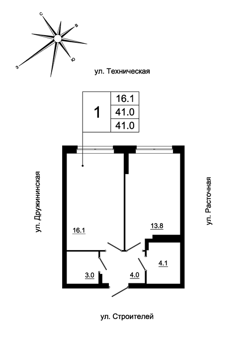 Общая площадь:41 м2