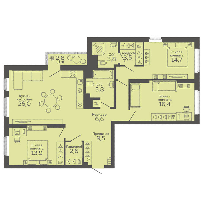 Общая площадь:103 м2