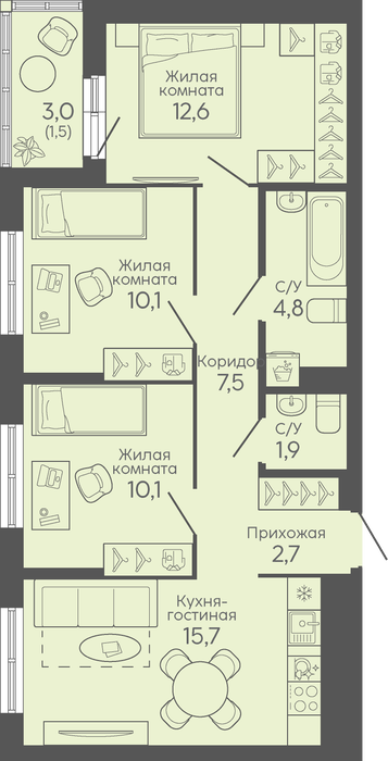 Екатеринбург, ул. Новосинарский, ЖК «Новокольцовский» (Дом №4) (Птицефабрика) - фото квартиры 4 сентября 2024 90 дн. 1 32.3 6/15 4 600 000
