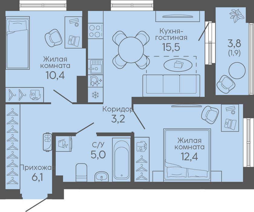 2-к квартира, Новосинарский, 6.1, ЖК «Новокольцовский» — 4 кв. 2025 г.