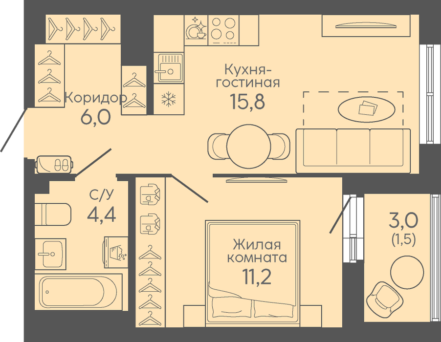 Екатеринбург, ул. Новосинарский, ЖК «Новокольцовский» (Дом №4) (Птицефабрика) - фото квартиры 4 сентября 2024 90 дн. 1 32.3 6/15 4 600 000