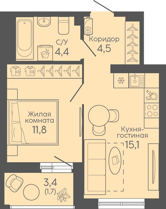 Екатеринбург, ул. Новосинарский, ЖК «Новокольцовский» (Дом №4) (Птицефабрика) - фото квартиры 4 сентября 2024 90 дн. 1 32.3 6/15 4 600 000