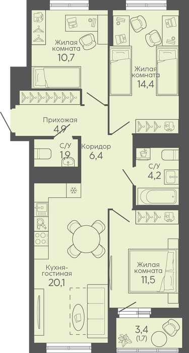 Екатеринбург, ул. Новосинарский, 4, ЖК «Новокольцовский» (Дом №4) (Птицефабрика) - фото квартиры 29 января 2025 90 дн. 1 26.2 7/8 3 500 000