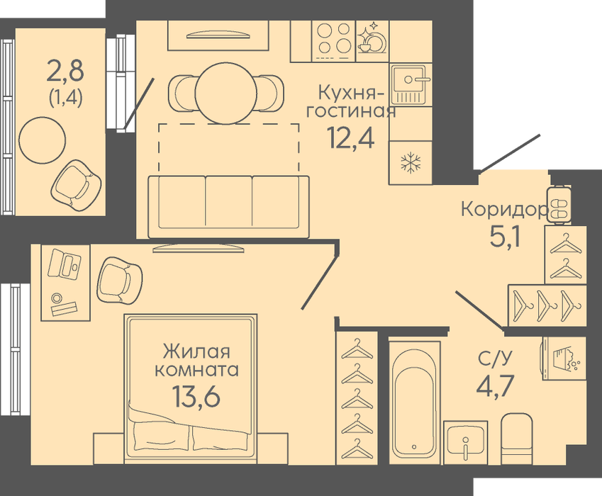Екатеринбург, ул. Новосинарский, ЖК «Новокольцовский» (Дом №4) (Птицефабрика) - фото квартиры 4 сентября 2024 90 дн. 1 32.3 6/15 4 600 000