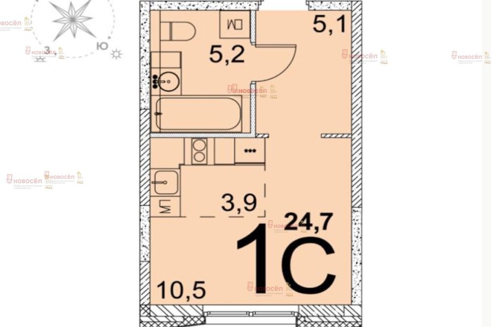 Объект № 193305. В продаже прекрасная квартира-студия с очень функциональной планировкой. Хорошая прихожая, большая остекленная лоджия! Район с развитой инфраструктурой. Один взрослый собственник, без долгов и без обременений, быстрый выход на сделку. ***Гарантийный сертификат «Защита собственности» по данному объекту в подарок***