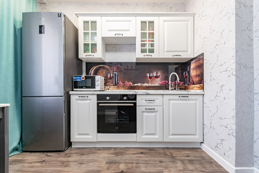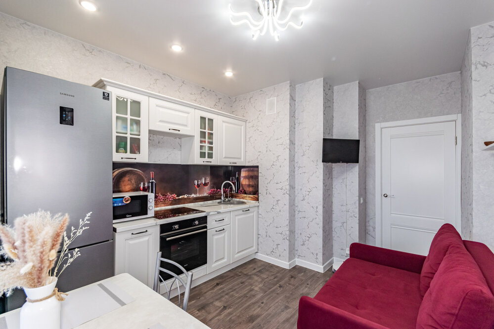 • В квартире остается: кухонный гарнитур с варочной плитой и духовым шкафом, гардеробная.