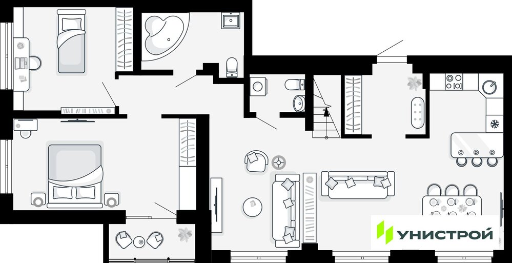 Свежий горный воздух, целебные хвойные ароматы, открытые террасы на высоких этажах, двор-парк с ландшафтным дизайном, сенсорными игровыми и спортивными зонами, бизнес-холлы с потолками до 5 м и авторским дизайном, удобный подземный паркинг. В «Небосклонах» представлены коллекционные квартиры с террасами на последних этажах и видом на Уктусские горы, а также эксклюзивные варианты с высокими потолками и вторым светом.