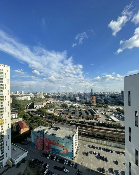- Видовой 23 этаж, большие окна с видом на город. В спальне – большое панорамное окно. Все окна с жалюзи.