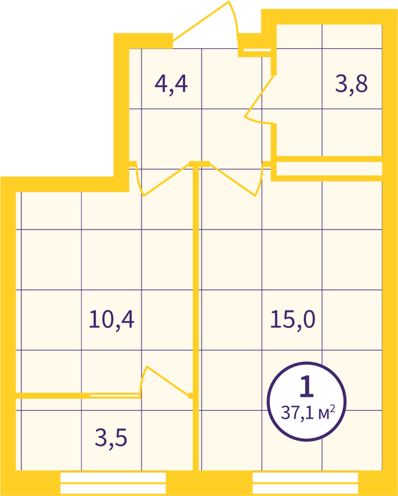 Общая площадь:35.33 м2