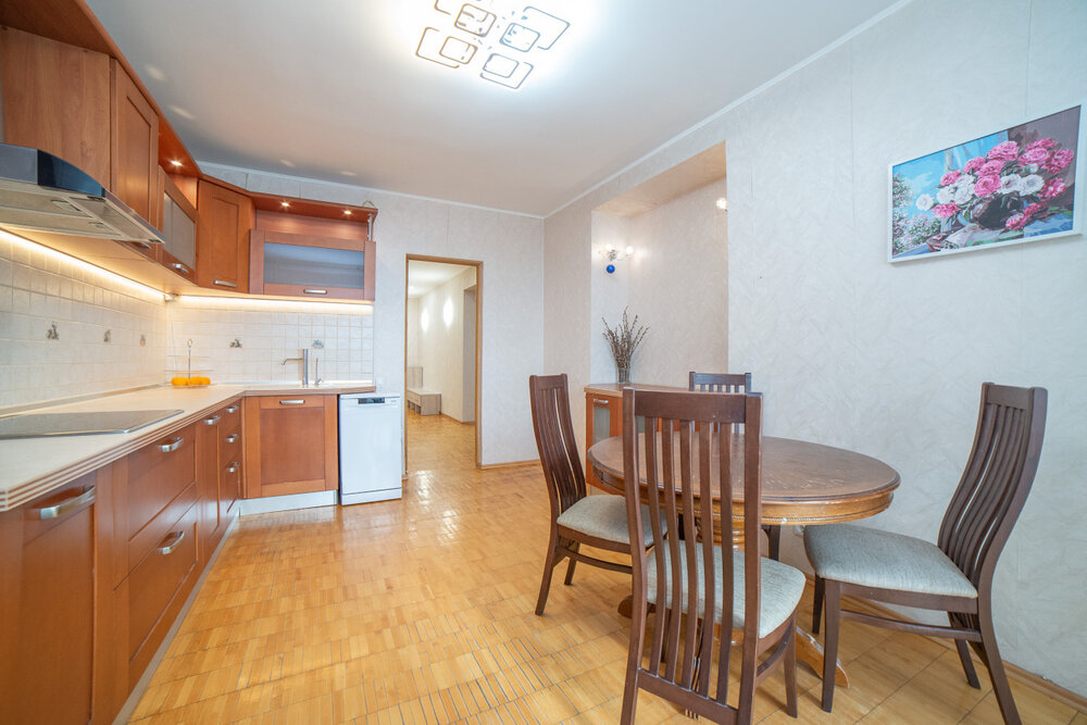 Продается светлая, теплая, просторная трехкомнатная квартира «под тапочки» — купил и заехал! Расположение — рядом с Шарташским рынком, перекресток Куйбышева — Восточная. Внимание! Дом во дворе, окна выходят на юго-восток, нет шума и вида рынка.Площадь квартиры 114,8 кв.: кухня-столовая 16 м2 и гостиная 24 м2 выходят на южную сторону; две спальни по 19 м2 и 17 м2, каждая с лоджиями (одна из которых обустроена под зимний сад), выходят на восток, что очень благоприятно для сна.В квартире выполнен качественный ремонт из дорогостоящих материалов европейских фабрик. Сделана дополнительная шумоизоляция. Трехкамерные стеклопакеты, застеклённые три лоджии, входная сейф-дверь. Сделан ремонт в 2023-2025 г. - новые обои в коридоре, спальной, детской. Новый потолок - детская. Новые трубы, счетчики ГВС и ХВС, как внутри квартиры, так и общедомовые. Новые стеклопакеты в гостиной и детской.Квартира продаётся с мебелью, техникой, предметами интерьера. Все как на фото! Много пространства для хранения вещей. Новый шкаф в спальне, новая прихожая, новый шкаф для хранения в одном из санузлов.Просторная и светлая кухня-столовая с итальянским гарнитуром площадью 16 кв. м оборудована всей необходимой техникой. Остаётся большой холодильник Samsung, обеденная зона из массива, новая посудомоечная машина. Технически предусмотрена возможность объединить кухню-столовую и гостиную.В гостиной остаётся итальянский гарнитур и мягкая натуральная кожаная мебель. Все телевизоры, мебель, шторы, светильники, ковры - все остается.Квартира расположена на 9-м этаже 16-этажного одно-подъездного кирпичного дома 2003 года постройки. Дом находится в отличном состоянии: в подъезде установлено видеонаблюдение, на первом этаже консьерж, есть наземная парковка. Свое ТСЖ. В доме всего 56 квартир, в основном — многокомнатные. На этаже 4 квартиры, дружелюбные тихие соседи. Прекрасная инфраструктура района. Дом расположен напротив Шарташского рынка, вокруг много продуктовых магазинов. Удобное транспортное сообщение позволяет быстро добраться до центра города и других районов — до остановки автобуса 5 мин, трамвая 10 мин, метро "Геологическая" 25 мин пешком.В шаговой доступности от дома (10-15 мин) расположены гимназия №13, гимназия №40, гимназия «Корифей», школа №94, гимназия №130. До парка Маяковского — 20 мин прогулочным шагом. Рядом детская поликлиника №13, садики. Идеальное место для комфортной жизни семьей.Квартира в чистой продаже, без обременений и ограничений. Единственный собственник с даты ввода дома в эксплуатацию. Быстрый выход на сделку. Ипотека.