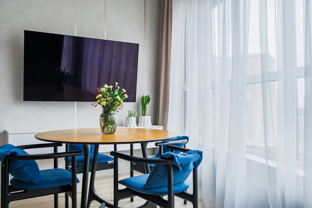 Из всех комнат апартаментов предусмотрен выход на собственную открытую террасу площадью 66 м2. На этой террасе сделан акцент проектировщиками. Она зрительно выделяется во всей концепции дома, эту квартиру не сложно различить с ул. Радищева и Шейнкмана. Единственная квартира с такой планировкой в резиденции. В данных апартаментах не сложно воплотить любой проект. Например, бьюти–лаб (поделив на 4 кабинета: студия маникюра, косметология, салон красоты и другие любые услуги, которые гармонично и прибыльно впишутся в данном престижном доме и районе. Для жителей и гостей резиденции появится ресторан со входом из холла. Ресепшн с расширенным консьерж-сервисом, где можно быстро решить вопросы, связанные с проживанием, и также заказать различные услуги: доставку еды, продуктов, воды, уборку, химчистку, выгул животных и полив цветов.