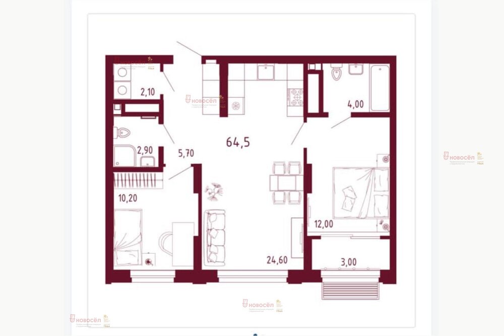 Дом сдан, квартира готова к заселению! Практичная планировка: кухня гостиная 16 кв.м, две спальни 12 и 15 кв.м. санузел, прачечная. Окна на юго-восток с пейзажем на город.