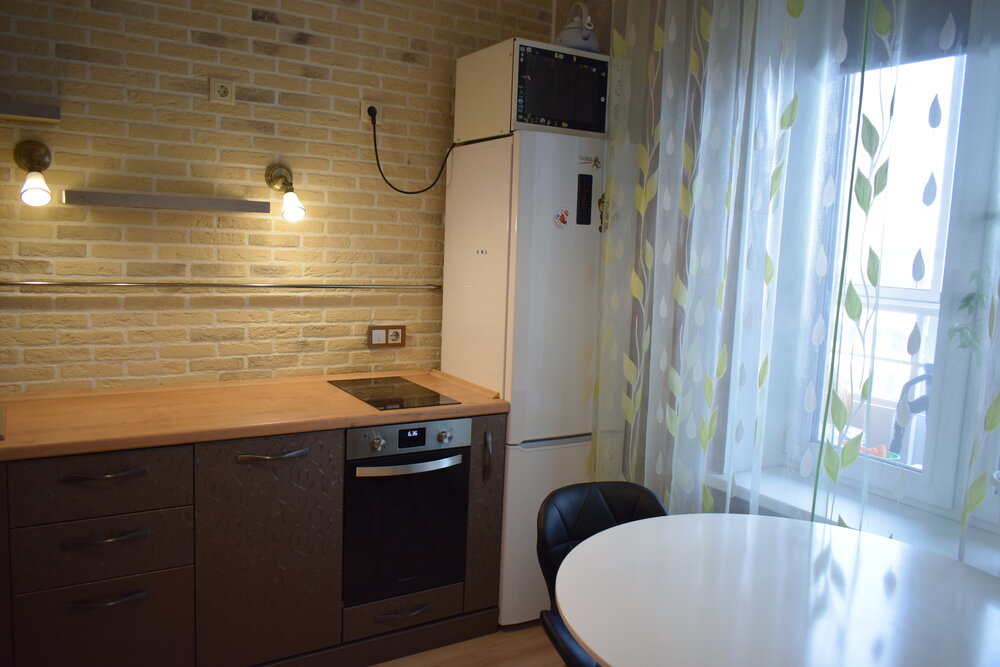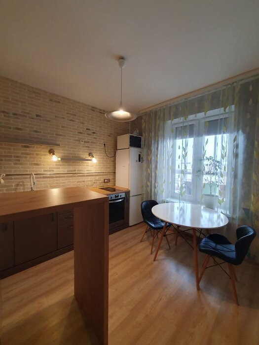 В просторной кухне – гостиной 17,5 кв.м. выделена обеденная и гостевая зоны. Кухонный гарнитур Лорена со встроенной техникой (посудомойка Bosch, духовой шкаф - Electrolux, варочная поверхность - Bosch, вытяжка - Еlika). На кухне установлен высококачественный влагостойкий немецкий ламинат Classen.