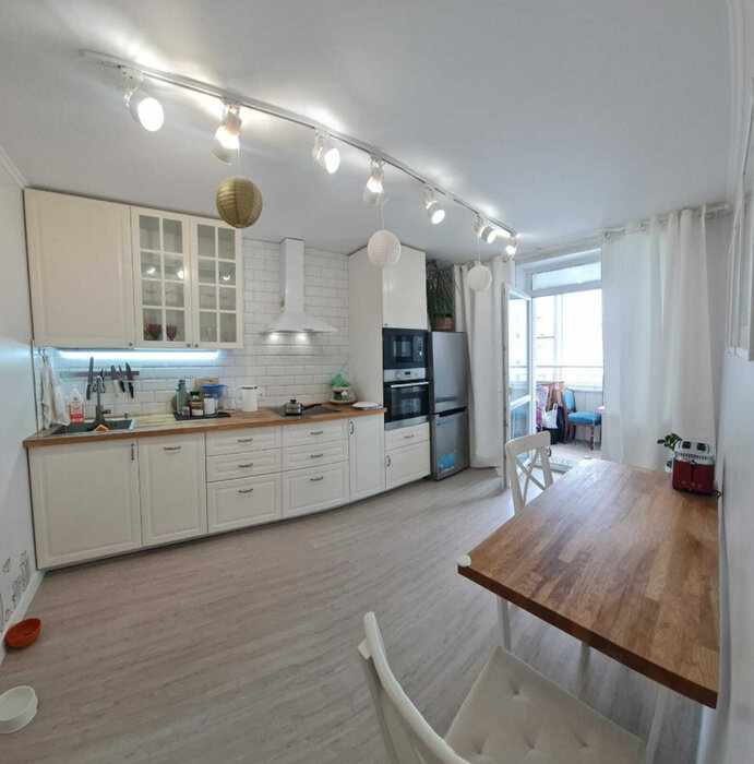 Просторная лоджия позволяет расширить пространство кухни, есть возможность её утеплить.