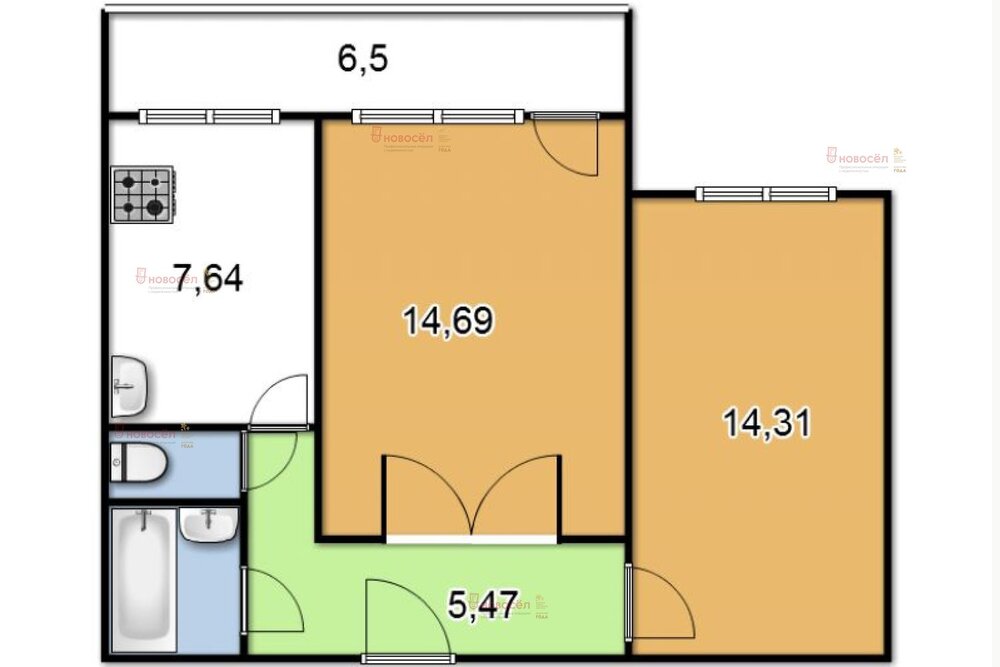 Отличная квартира общей площадью 48.9 кв.м. ID объекта в нашей базе: 11717