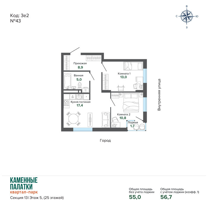 Продается квартира в современном Квартал-парке «Каменные Палатки» – новый жилой комплекс комфорт-класса расположен на границе микрорайонов ЖБИ и Втузгородок, в 15 минутах от центра города рядом с природным парком Каменные палатки и озером Шарташ.В продаже 4 очередь (секция 13).Преимущества квартир:• Высокие потолки (2,7 м);• Качественная чистовая отделка: входные двери, ламинат, обои под покраску, установлена сантехника;• Горизонтальная разводка систем отопления – свободные стены;• Счетчики на э/э, воду и тепло – ежемесячная экономия на коммунальных платежах;• Сделаны входы для слаботочных сетей (интернет, телефон, цифровое телевидение).Преимущества дома:• Просторная закрытая придомовая территория;• Прямо из комплекса выход в природный парк Каменные Палатки;• Просторная наземная парковка и подземный паркинг;• Муниципальный детский сад в 3й очереди на 200 мест;• В жилом комплексе расположены ЖизньМарт, Монетка, Пятёрочка, пункты выдачи ЯндексМаркет, Ozon и Wildberries. Детский оздоровительный центр и стоматологическая клиника. • В нескольких минутах от дома расположены: гимназия № 45, пять детских садов, гипермаркет «Магнит Семейный».