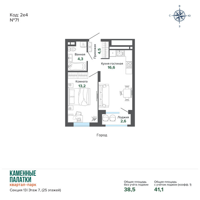Общая площадь:41.07 м2