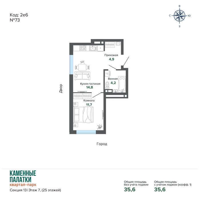 Общая площадь:35.6 м2