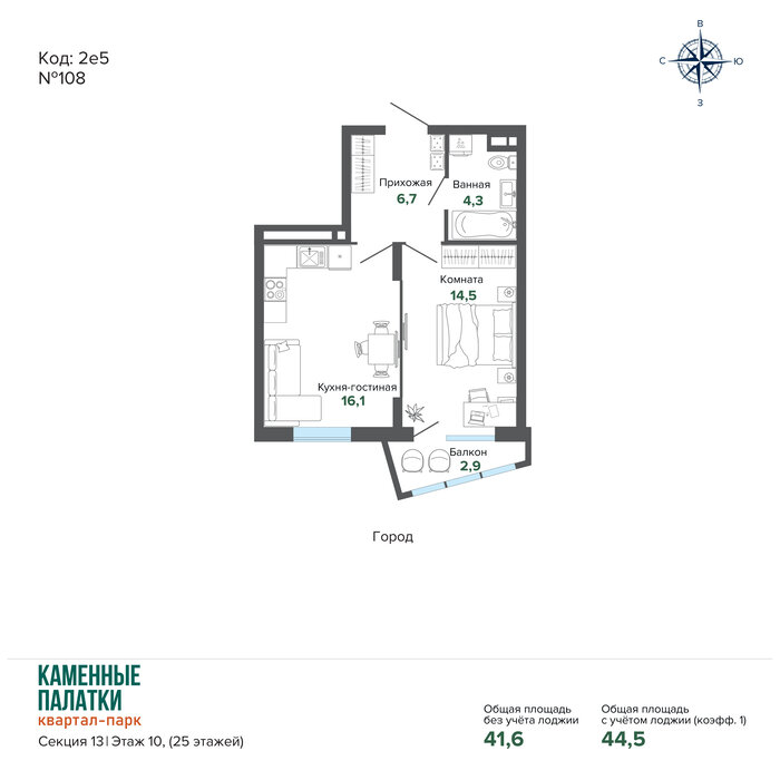 Екатеринбург, ул. Высоцкого - фото квартиры 21 февраля 2026 90 дн. 1 41.33 15/25 6 944 082