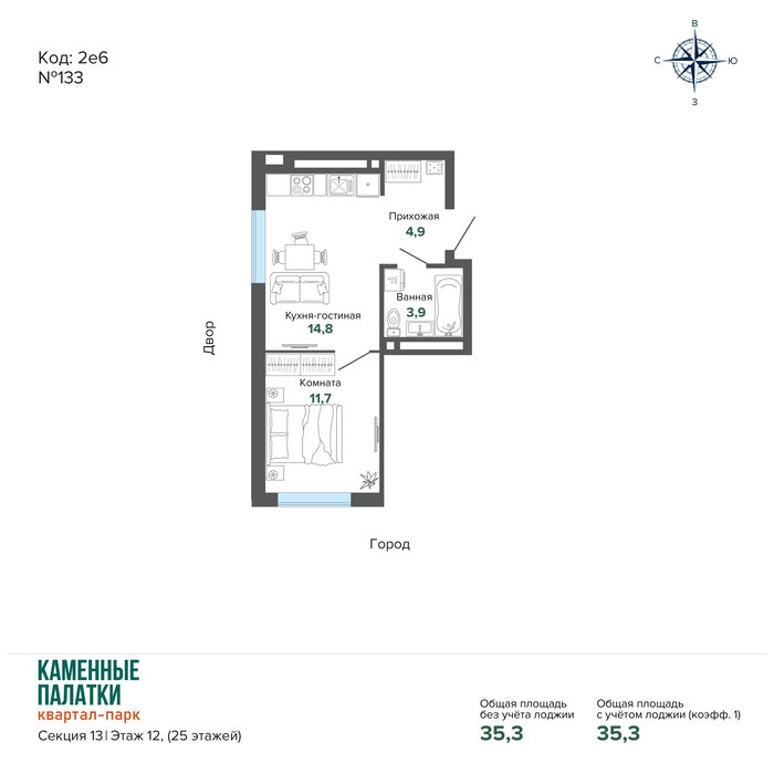 Продается квартира в современном Квартал-парке «Каменные Палатки» – новый жилой комплекс комфорт-класса расположен на границе микрорайонов ЖБИ и Втузгородок, в 15 минутах от центра города рядом с природным парком Каменные палатки и озером Шарташ.В продаже 4 очередь (секция 13).Преимущества квартир:• Высокие потолки (2,7 м);• Качественная чистовая отделка: входные двери, ламинат, обои под покраску, установлена сантехника;• Горизонтальная разводка систем отопления – свободные стены;• Счетчики на э/э, воду и тепло – ежемесячная экономия на коммунальных платежах;• Сделаны входы для слаботочных сетей (интернет, телефон, цифровое телевидение).Преимущества дома:• Просторная закрытая придомовая территория;• Прямо из комплекса выход в природный парк Каменные Палатки;• Просторная наземная парковка и подземный паркинг;• Муниципальный детский сад в 3й очереди на 200 мест;• В жилом комплексе расположены ЖизньМарт, Монетка, Пятёрочка, пункты выдачи ЯндексМаркет, Ozon и Wildberries. Детский оздоровительный центр и стоматологическая клиника. • В нескольких минутах от дома расположены: гимназия № 45, пять детских садов, гипермаркет «Магнит Семейный».