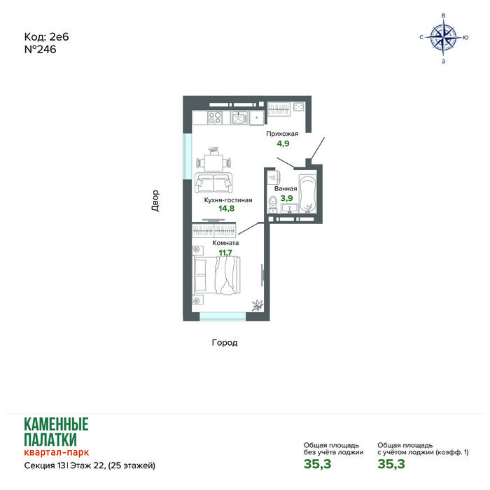 Продается квартира в современном Квартал-парке «Каменные Палатки» – новый жилой комплекс комфорт-класса расположен на границе микрорайонов ЖБИ и Втузгородок, в 15 минутах от центра города рядом с природным парком Каменные палатки и озером Шарташ.В продаже 4 очередь (секция 13).Преимущества квартир:• Высокие потолки (2,7 м);• Качественная чистовая отделка: входные двери, ламинат, обои под покраску, установлена сантехника;• Горизонтальная разводка систем отопления – свободные стены;• Счетчики на э/э, воду и тепло – ежемесячная экономия на коммунальных платежах;• Сделаны входы для слаботочных сетей (интернет, телефон, цифровое телевидение).Преимущества дома:• Просторная закрытая придомовая территория;• Прямо из комплекса выход в природный парк Каменные Палатки;• Просторная наземная парковка и подземный паркинг;• Муниципальный детский сад в 3й очереди на 200 мест;• В жилом комплексе расположены ЖизньМарт, Монетка, Пятёрочка, пункты выдачи ЯндексМаркет, Ozon и Wildberries. Детский оздоровительный центр и стоматологическая клиника. • В нескольких минутах от дома расположены: гимназия № 45, пять детских садов, гипермаркет «Магнит Семейный».