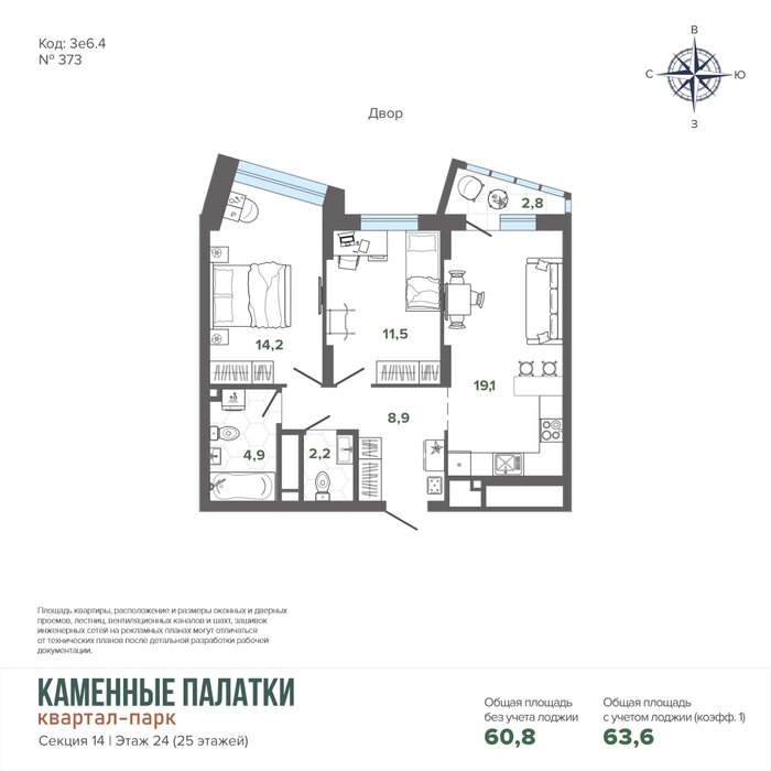Общая площадь:63.59 м2