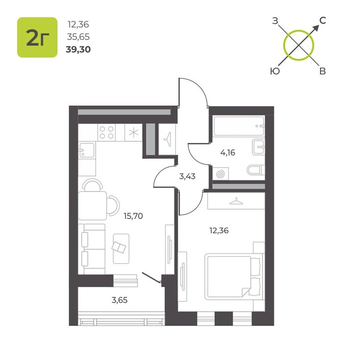 Общая площадь:39.38 м2