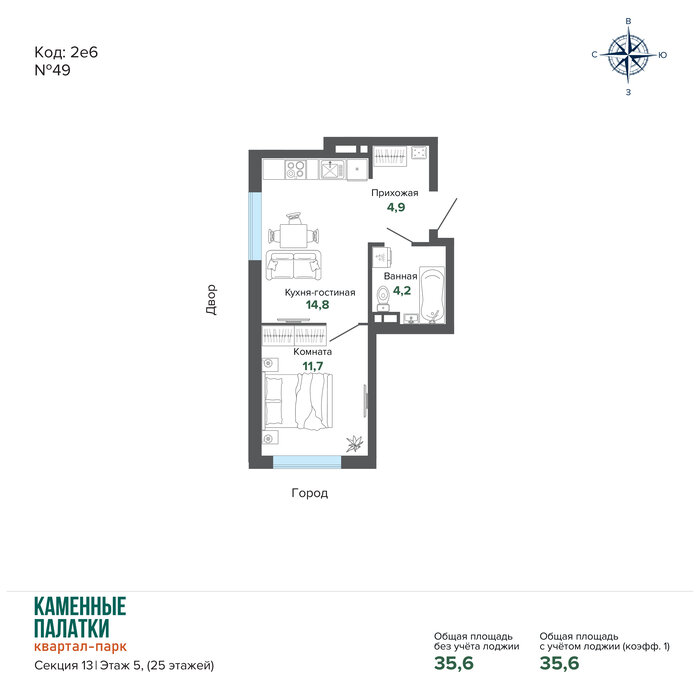 Общая площадь:35.6 м2