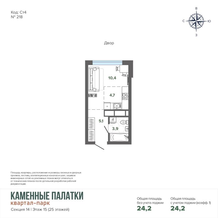 Общая площадь:24.16 м2