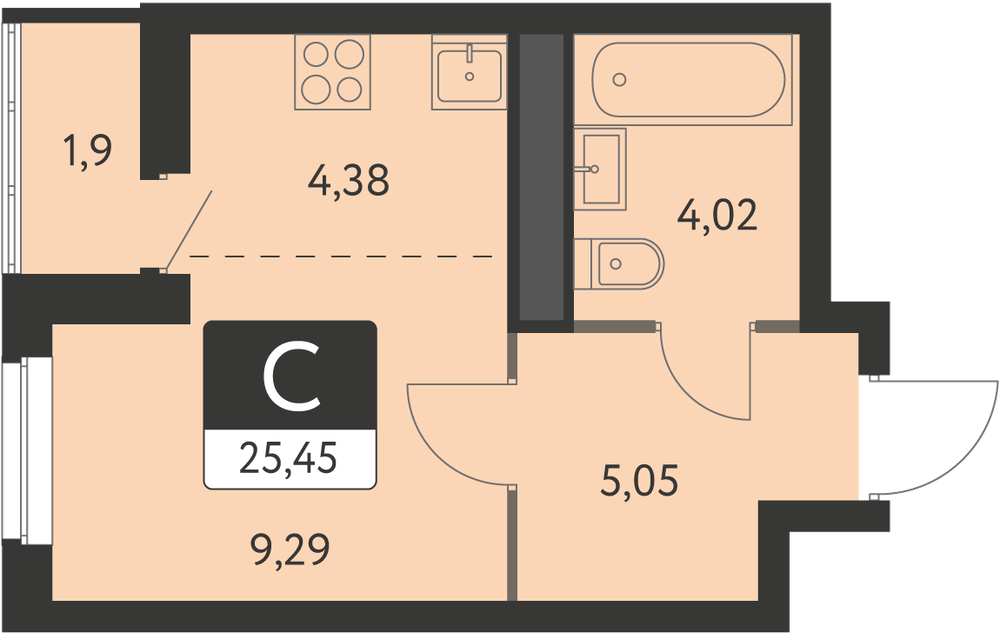 Функциональная планировка: комната 11,6 кв. м., кухня 10,4 кв.м., просторный коридор с нишей под шкаф-купе, совмещенный санузел, французский балкон, окна на улицу, комфортный 8-ой этаж.