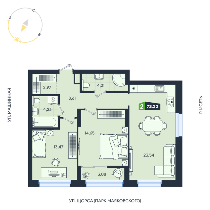 Екатеринбург, ул. Ткачей, 19 (Парковый) - фото квартиры 25 сентября 2025 90 дн. 2 78.7 13/23 18 500 000