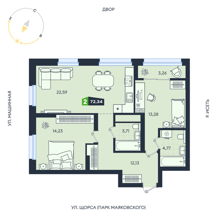 Екатеринбург, ул. Ткачей, 17 (Парковый) - фото квартиры 31 декабря 2025 90 дн. 4 119 3/30 34 000 000