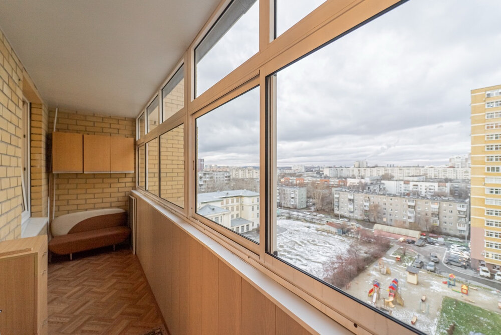 - Балкон-лоджия с заказной мягкой мебелью, для комфортного отдыха с видом на Верх-Исетский пруд.