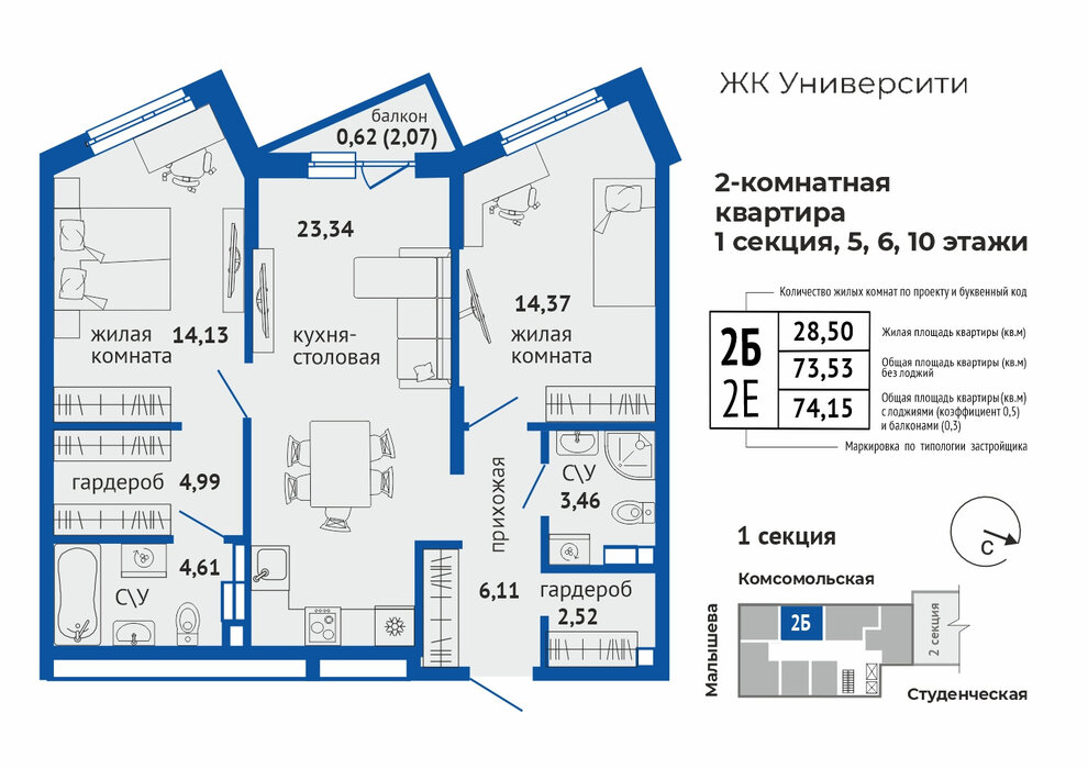 Общая площадь:74.15 м2