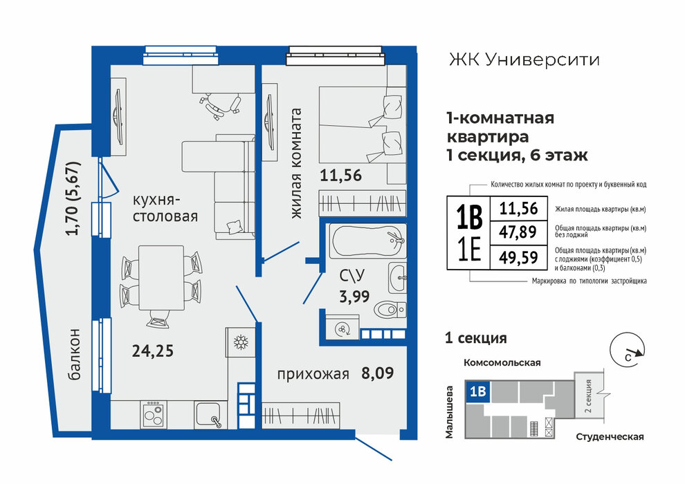 Продажа квартиры: Малышева 137А, ул. Малышева, 137а, ЖК Университи (Дом)