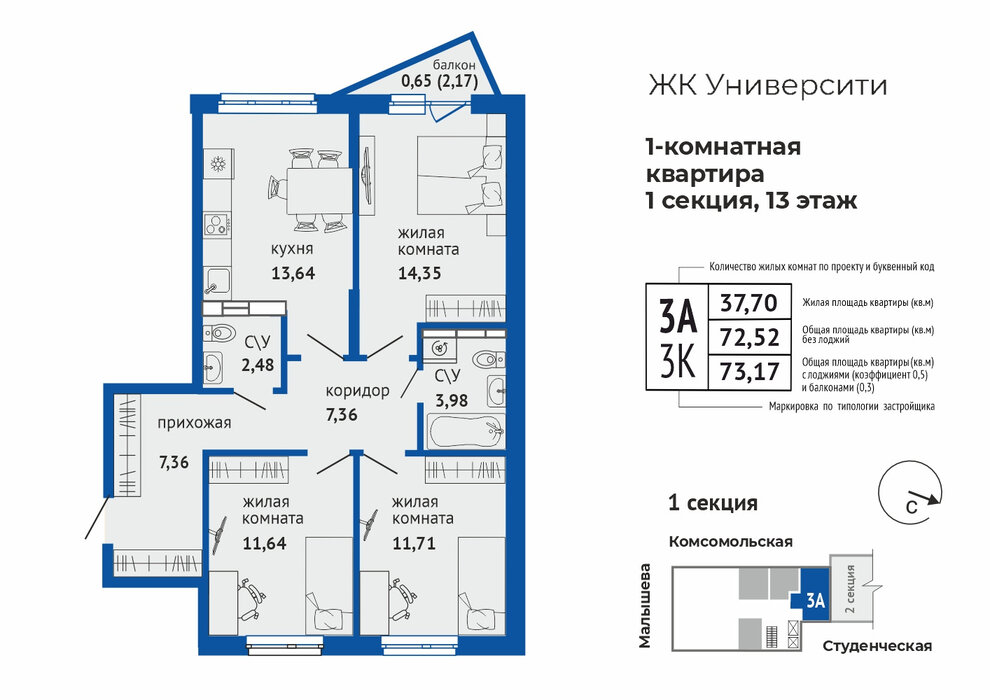 Продажа квартиры: Малышева 137А, ул. Малышева, 137а, ЖК Университи (Дом)