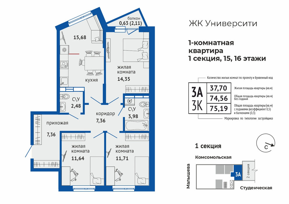Продажа квартиры: Малышева 137А, ул. Малышева, 137а, ЖК Университи (Дом)