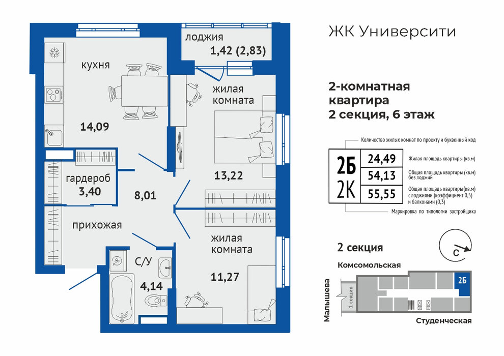 2-к квартира, Блюхера, 18/5 — 3 кв. 2025 г.