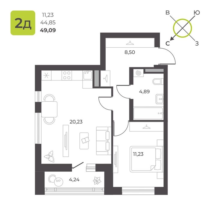Общая площадь:49.09 м2