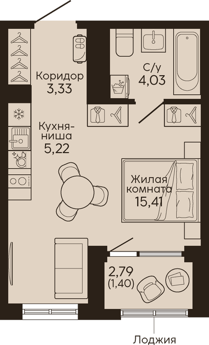 Жилая площадь:15.41 м2