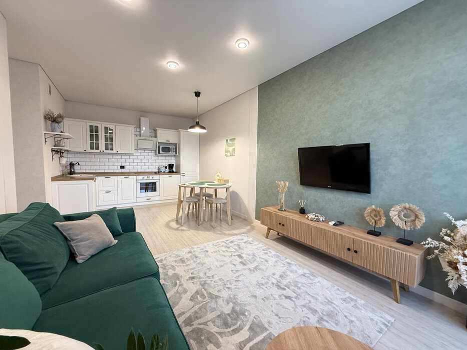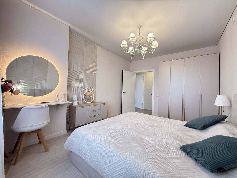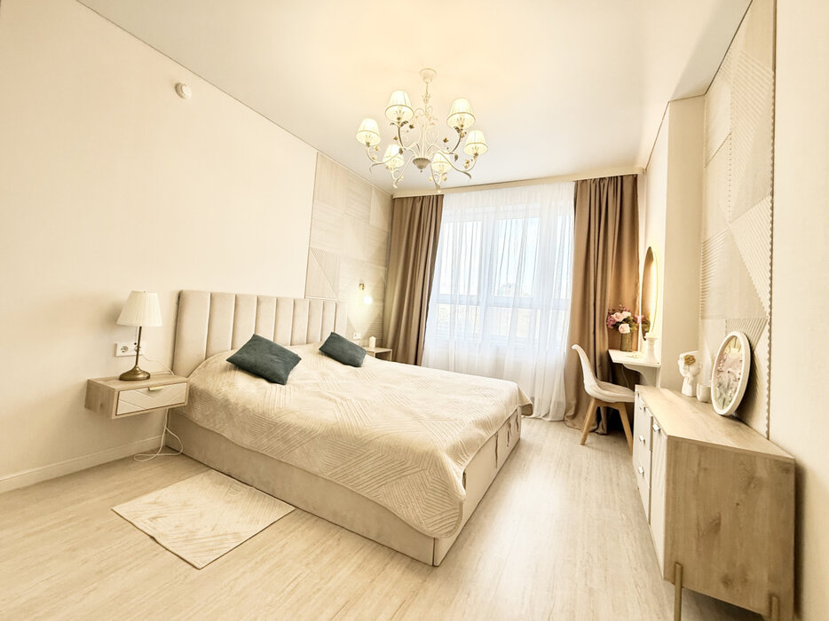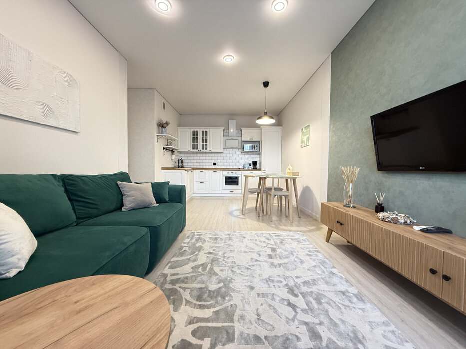 Продается уютная и комфортабельная квартира в жилом комплексе «Московский квартал».Интересное планировочное решение: просторная кухня гостиная и 2 изолированные комнаты. ▌ Интерьер и отделка- Современный дизайн выполнен в конце декабря 2024 года с использованием качественных материалов:- Стены выровнены идеально под углом 90 градусов.- Пол покрыт прочным кварц-винилом.- Итальянские краски украшают стены жилых комнат.- Санитарные узлы отделаны итальянской плиткой премиум-класса.- Установлены качественные сантехнические изделия немецких брендов Hansgrohe и Laufen Pro.- Во всех помещениях установлены системы теплого пола с регулировкой температуры.- Особый шик интерьеру придают современные керамические полотенцесушители.▌ Кухонная зона- Индивидуально разработанный кухонный гарнитур с немецкой фурнитурой Blum и каменной столешницей.- Современная бытовая техника немецкого бренда Korting, включая варочную панель, духовку, микроволновую печь, холодильник и морозильную камеру.- Дополнительно установлена посудомоечная машина и мощная вытяжка.- Встроенный бар с оригинальной подсветкой для хранения и демонстрации ваших любимых напитков.- Раздвижной обеденный стол, выполненный из высокопрочной керамики, готов принять большую компанию гостей.▌ Гостиная и спальня- Мягкий и просторный диван длиной 3,1 метра от известной марки Bono обеспечит максимальный комфорт вам и вашим гостям.- ТВ-зона оснащена современной техникой, позволяя комфортно смотреть любимые фильмы вечером.- Система кондиционирования от известного шведского производителя Electrolux подарит приятную прохладу даже в самые жаркие дни лета.- Потолки оснащены эффектной системой освещения, создающей иллюзию глубины пространства благодаря световым теням.▌ Дополнительные удобства- Светлая и просторная спальня, расположенная рядом с лоджией, позволит вам наслаждаться прекрасными видами заката каждый вечер.- Уютная детская комната отлично подойдет как игровое пространство для детей, так и гостеприимная гостевая зона для будущих визитов родственников и друзей.- Широкий гардеробный шкаф в спальне оснащен удобным подъемным механизмом кровати размером 180 х 200 см.▌ Прочие преимущества покупки- Все межкомнатные двери выполнены из качественного материала и снабжены надежной фурнитурой.- Покупатель получает бонусом всю технику, мебель и элементы декора.- Комплекс предлагает удобные зоны отдыха и ожидание гостей, закрытую территорию с видеонаблюдением, парковочные места и сервис консьержа.- Хорошее транспортное сообщение позволяет быстро добраться в любую точку города.- Рядом расположены фитнес-центр с бассейном и тренажерным залом, магазины, медицинские учреждения и сервисы красоты.- Приятные прогулки обеспечат близлежащие парки и скверы.▌ Воспользуйтесь выгодным предложением. Записывайтесь на просмотр. ID объекта в нашей базе: 4742