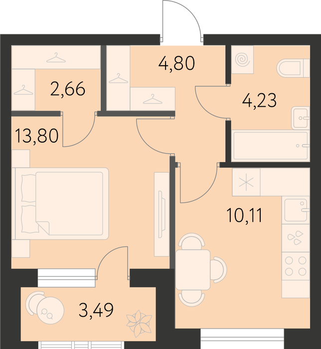 Общая площадь:34.69 м2