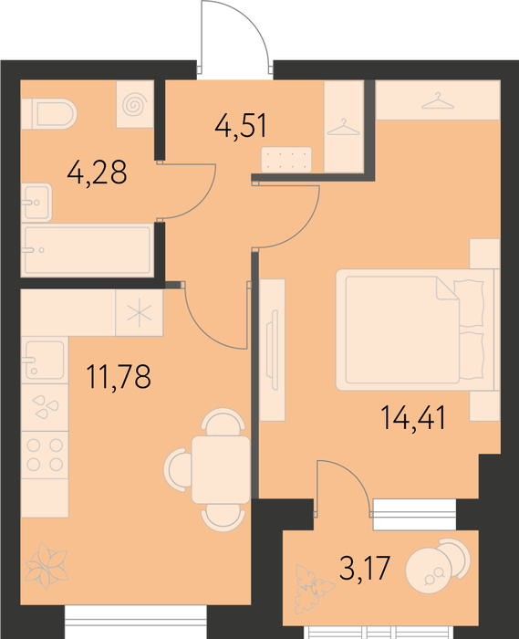 • 1-к квартира, Вильгельма Де Генина, 3.6.1, ЖК "Первый Академ"