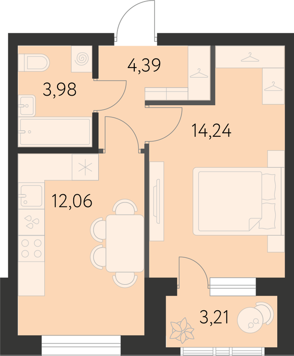 • 1-к квартира, Вильгельма Де Генина, 3.6.1, ЖК "Первый Академ"