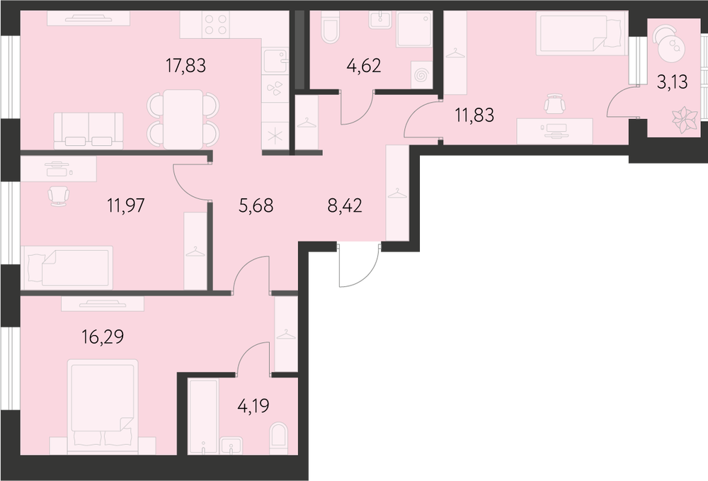 Продается 3-комнатная квартира площадью 82.4 кв.м. от девелопера «Академический» в жилом квартале «Первый Академ». Срок сдачи дома в 2028 году. Выгоды и скидка напрямую от застройщика.