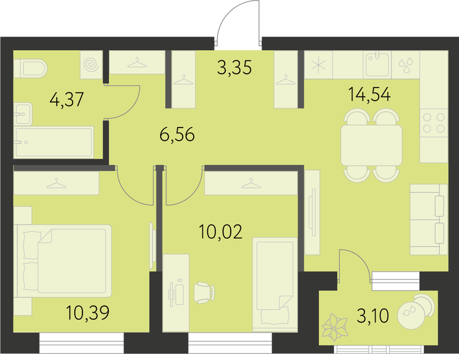 Количество комнат:2