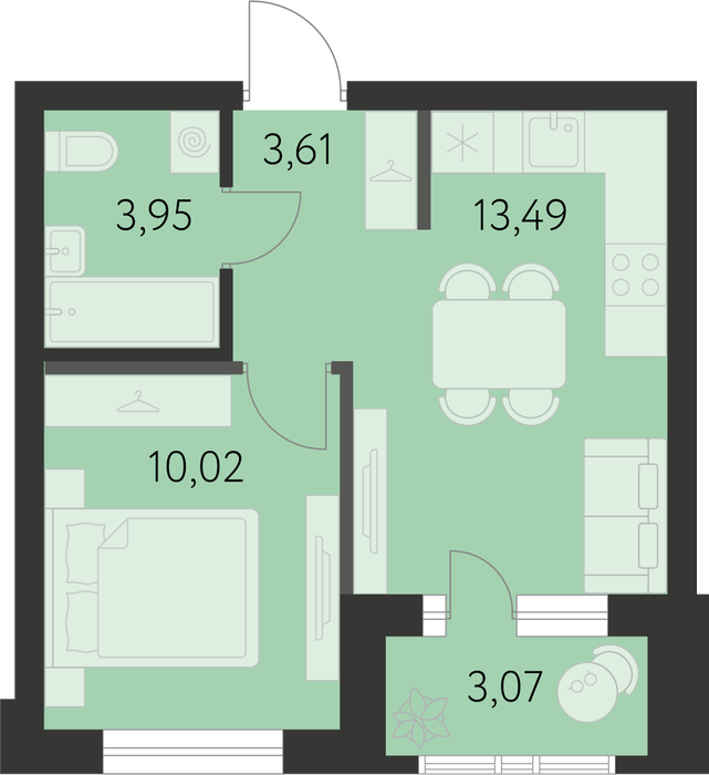 Общая площадь:32.61 м2