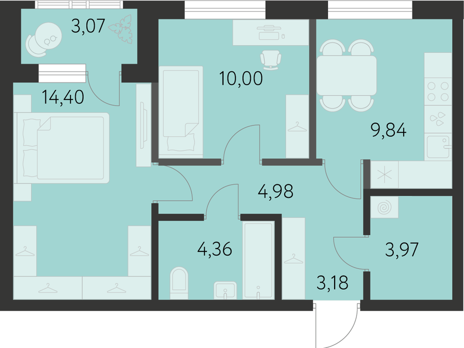 Общая площадь:52.27 м2
