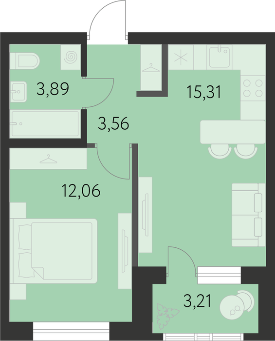 Общая площадь:36.43 м2