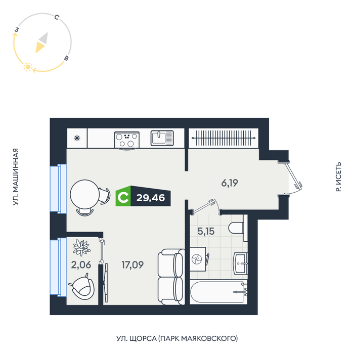 Продажа квартиры: Екатеринбург, ул. Машинная, 1в/4, ЖК "Clever park" (Клевер парк) (Дом 8)
